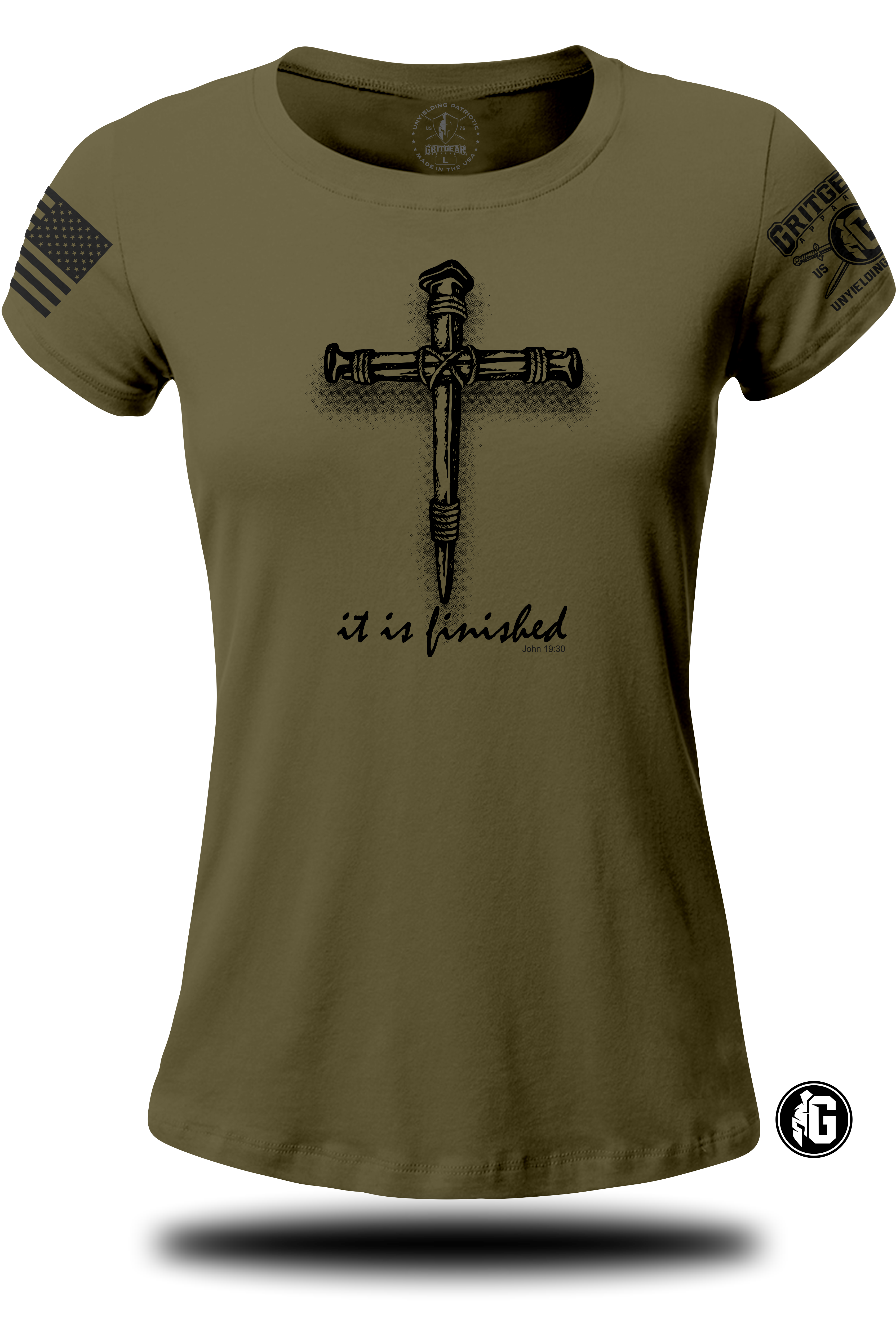 - Professionally silk-screened It Is Finished Ladies T-shirt